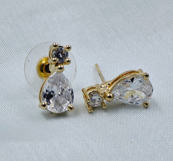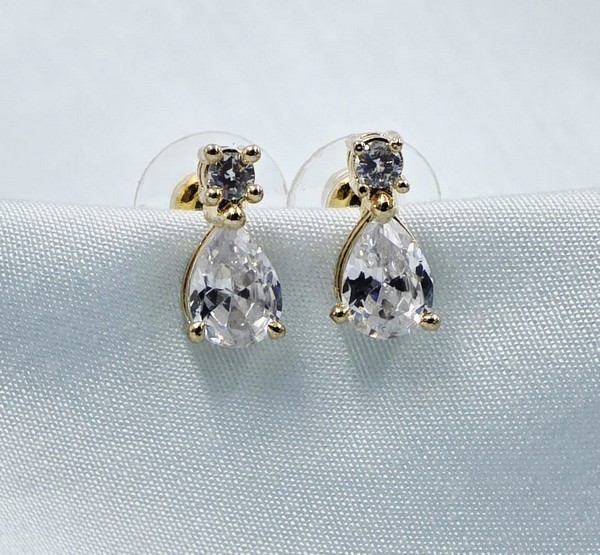 The Noor Drop Studs embody grace in its purest form. A brilliant round-cut stone leads to a larger, pear-shaped drop that captures and reflects light beautifully. Set in a delicate gold-tone base, this pair is ideal for minimalists who still want to shine.